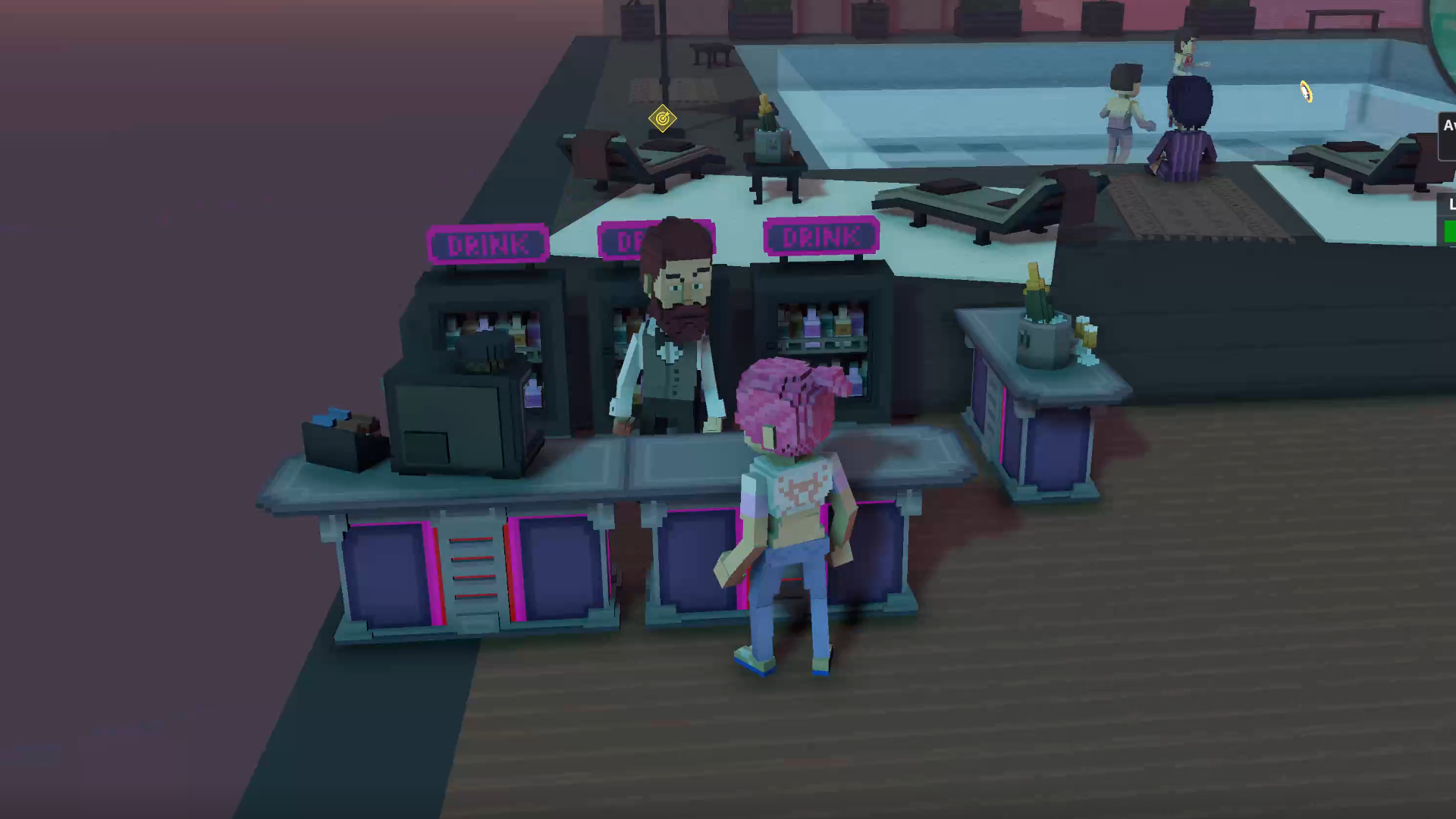 월드에서 "A7X" 가 몇 번이나 쓰여있는지 알아내고, 루프탑의 바에 가서 말해주세요.